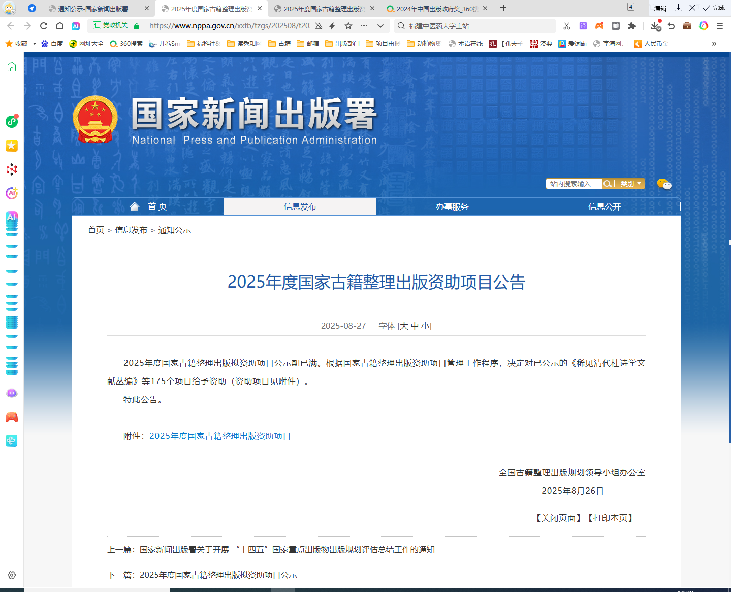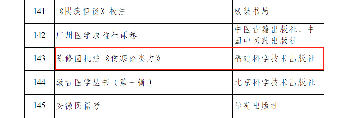 2025年8月26日,全國(guó)古籍整理出版規(guī)劃領(lǐng)導(dǎo)小組辦公室正式公布2025年度國(guó)家古籍整理出版資助項(xiàng)目評(píng)審結(jié)果,福建科學(xué)技術(shù)出版社申報(bào)的《陳修園批注〈傷寒論類方〉》項(xiàng)目成功入選,標(biāo)志著該項(xiàng)目在古籍整理與出版領(lǐng)域獲得國(guó)家級(jí)認(rèn)可。此次入選實(shí)現(xiàn)了福建科學(xué)技術(shù)出版社在國(guó)家古籍整理出版資助項(xiàng)目中零的突破。