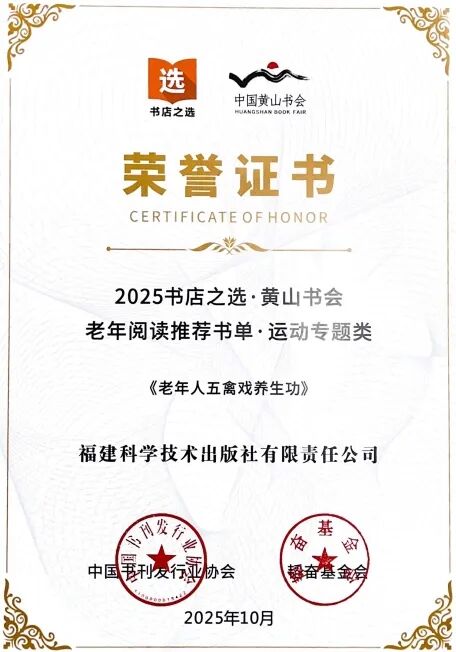 11月15日在中國黃山書會(huì)期間,由中國書刊發(fā)行業(yè)協(xié)會(huì)、韜奮基金會(huì)甄選,我社圖書《老年人五禽戲養(yǎng)生功》入選“2025書店之選活動(dòng)·黃山書會(huì) 老年閱讀推薦書單”,于首屆老年閱讀創(chuàng)新發(fā)展大會(huì)現(xiàn)場公布。