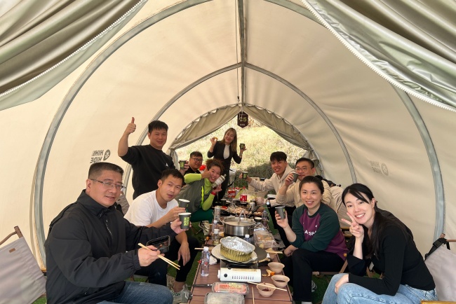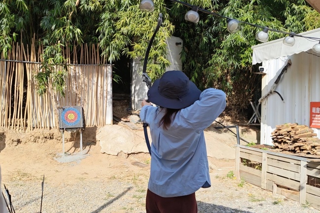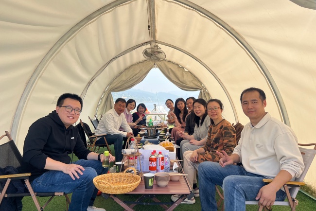 臨近中午,現(xiàn)場(chǎng)升騰起裊裊炊煙,大家圍爐而坐、自助燒烤,伴隨著四溢的香氣,分享著工作與生活中的趣事。午飯過后的自由活動(dòng)時(shí)間,工會(huì)準(zhǔn)備了豐富多彩的項(xiàng)目。許多員工走向草坪,體驗(yàn)射箭和飛盤運(yùn)動(dòng):射箭場(chǎng)上,大家屏息凝神,握弓搭箭,每一次中靶都贏得陣陣喝彩;飛盤局中,大家奔跑跳躍,盡情揮灑汗水。在另一側(cè)的帳篷下,則是一番歲月靜好:有的員工在湖畔茶敘,于湖光山色中享受片刻寧?kù)o;更有“歌神”們拿起了麥克風(fēng),用歌聲抒發(fā)情感。